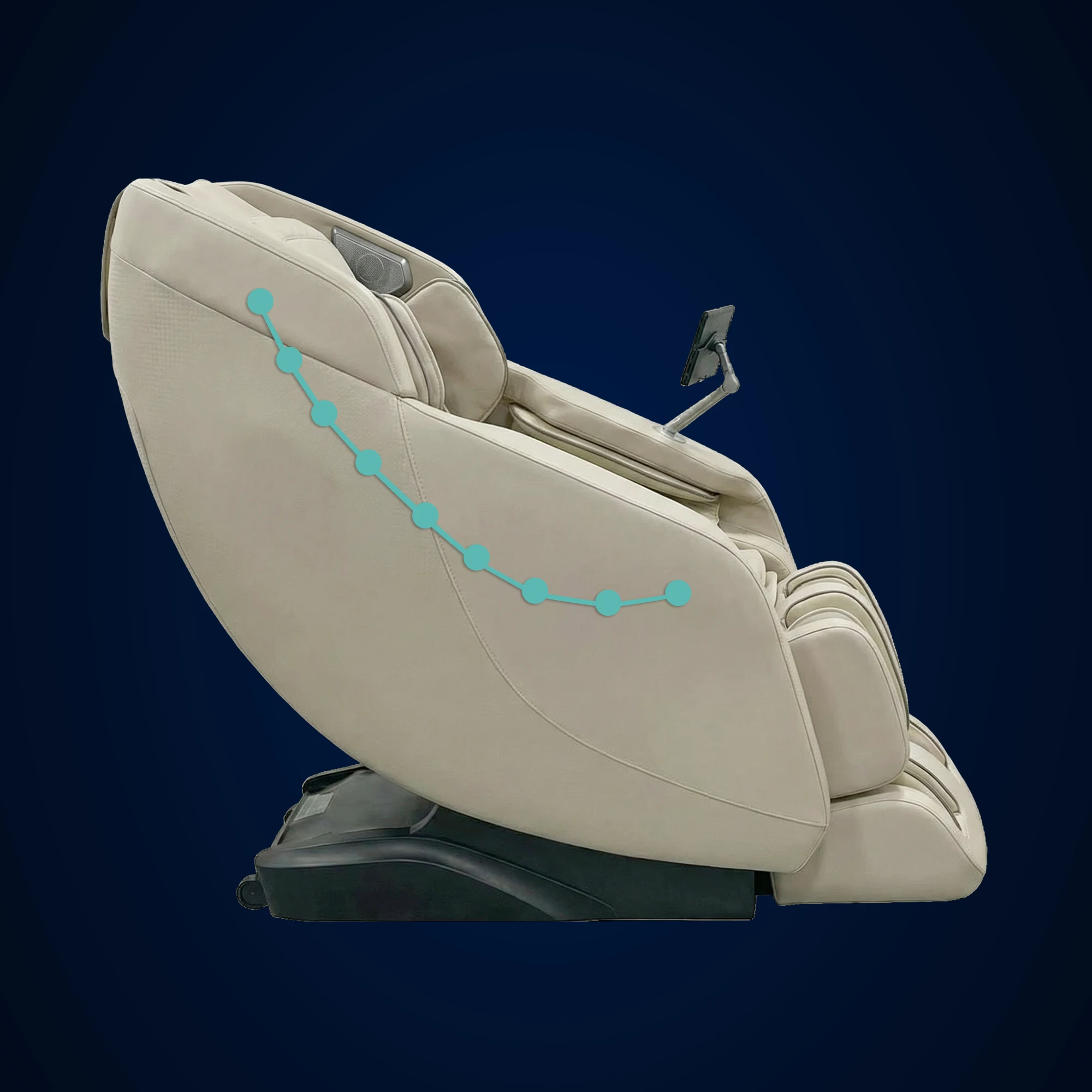L-Track follows the natural curve of your back, then extends to your gluteus muscle group, for a more complete massage.