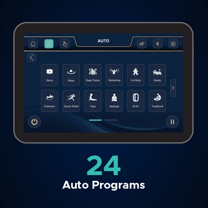 Select from 24 expertly crafted auto programs, spanning soothing relaxation to energizing full-body stretches.