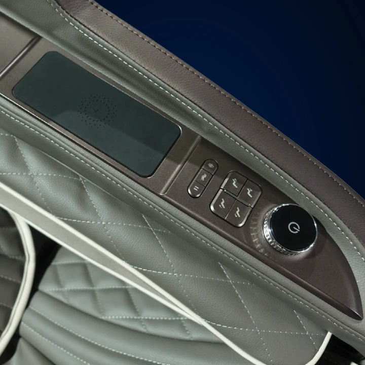 Enjoy enhanced control at your fingertips with the quick-access control panel, allowing you to adjust 4D intensity via the smart dial, backrest and footrest incline or recline, heat, zero gravity, and pause your massage session. The panel also features a wireless charging pad for smart devices, with a conveniently placed USB-C charging port on the opposite side.
