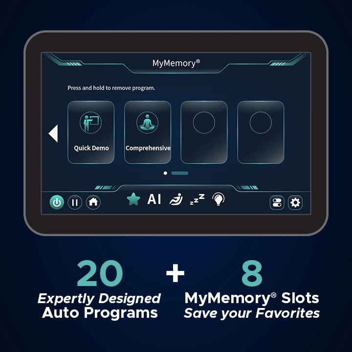 Select from 20 expertly crafted auto programs, spanning soothing relaxation to energizing full-body stretches, and save your favorite sessions to MyMemory® for effortless recall anytime.