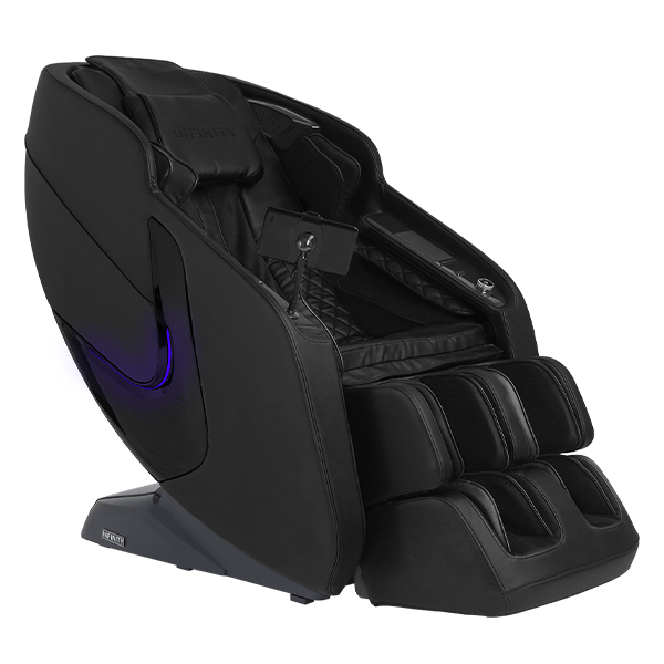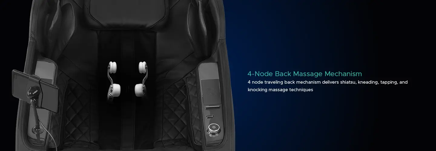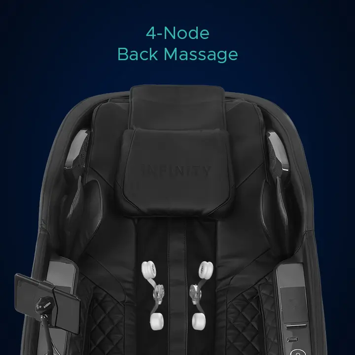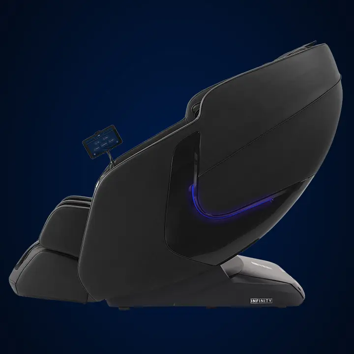 Equipped with a versatile, 4-Node Back Massage Mechanism, the Solstice Deluxe offers a full range of techniques — including shiatsu, kneading, tapping, and knocking, that work together to soothe tension and refresh tired muscles. The variety ensures you enjoy a massage that feels both dynamic and tailored, bringing spa-inspired relief into the comfort of your home. Before every session, TrueFit® Body Scanning Technology analyzes your unique size and shape to ensure the massage begins perfectly tuned to your body. For full-body rejuvenation, the Solstice Deluxe pairs dual foot rollers and airbag compression therapy to ease tension and improve circulation, while soothing lumbar heat helps melt away stress. Built-in Bluetooth Speakers, a smart dial controller, and convenient device charging keep your sessions immersive and effortless. To complete the experience, chromotherapy lighting sets a calming mood, delivering a holistic escape that goes far beyond relaxation.