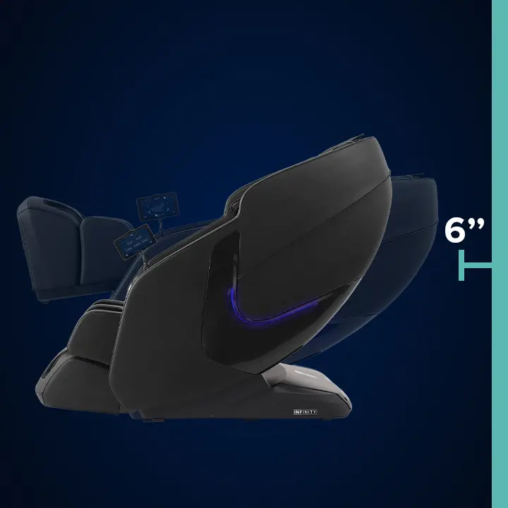 By sliding the chair forward while reclining, this feature allows the amount of space required between the chair and the wall to be just a few inches. Chairs without this feature must be placed far away from the wall taking up much more space in the room.