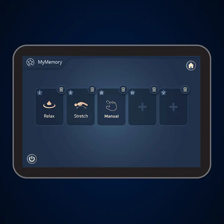 Your chair is equipped with a memory recording feature allowing you to save your favorite massage programs that can be quickly revisited later. Create and save a custom program by choosing a manual session with your preferred settings.